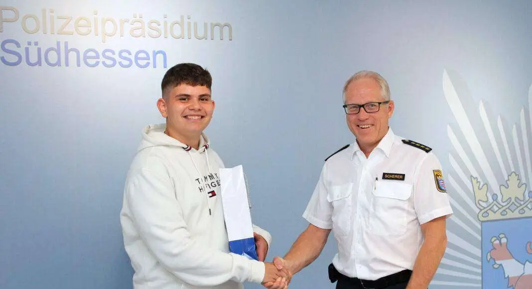 Der 14 Jahre alte Louis Martin aus Griesheim hat einem 5-jährigen Jungen das Leben gerettet. Das außergewöhnliche Handeln des Jugendlichen wurde am Dienstag (13. September 2022) im Rahmen einer feierlichen Stunde im Polizeipräsidium Südhessen gewürdigt.