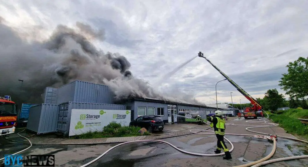 Aktuell kommt es zu einem Großeinsatz der Feuerwehr in der Justus-von-Liebig-Straße in Alzey. Dort steht eine rund 4.000 Quadratmeter große Lagerhalle in Brand. Zahlreiche Einsatzkräfte sind vor Ort und bekämpfen die Flammen. BYC-News ist vor Ort.