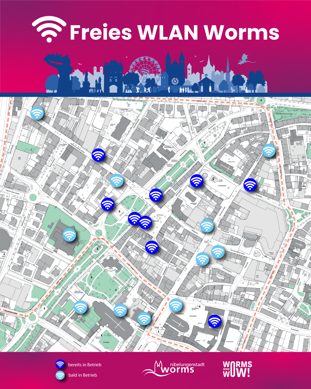 WLAN Worms: Die Stadt Worms investiert gezielt in ihre digitale Infrastruktur und treibt mit dem Projekt „Freies WLAN Worms“ die flächendeckende Versorgung der Innenstadt mit kostenlosem Internetzugang voran. Bis Mitte des Jahres sollen zentrale Bereiche vollständig erschlossen sein – doch damit ist längst nicht Schluss: Auch über den Sommer hinaus ist ein fortlaufender Ausbau geplant. Ziel ist es, die Innenstadt attraktiver, moderner und digital zugänglicher zu gestalten.