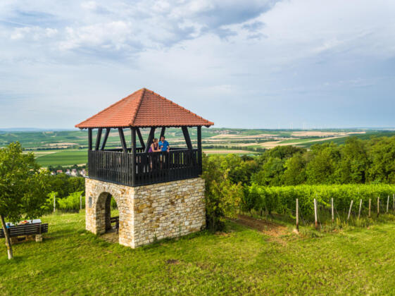 Entlang vulkanischer Andesit-Steinbrüche folgt der Weg dem Aulheimer Graben zwischen Wiesen und Weinbergen auf den Adelberg hinauf. Auf dem Berg wartet der Flonheimer Trullo, das Wahrzeichen Rheinhessens, auf die Wanderer.