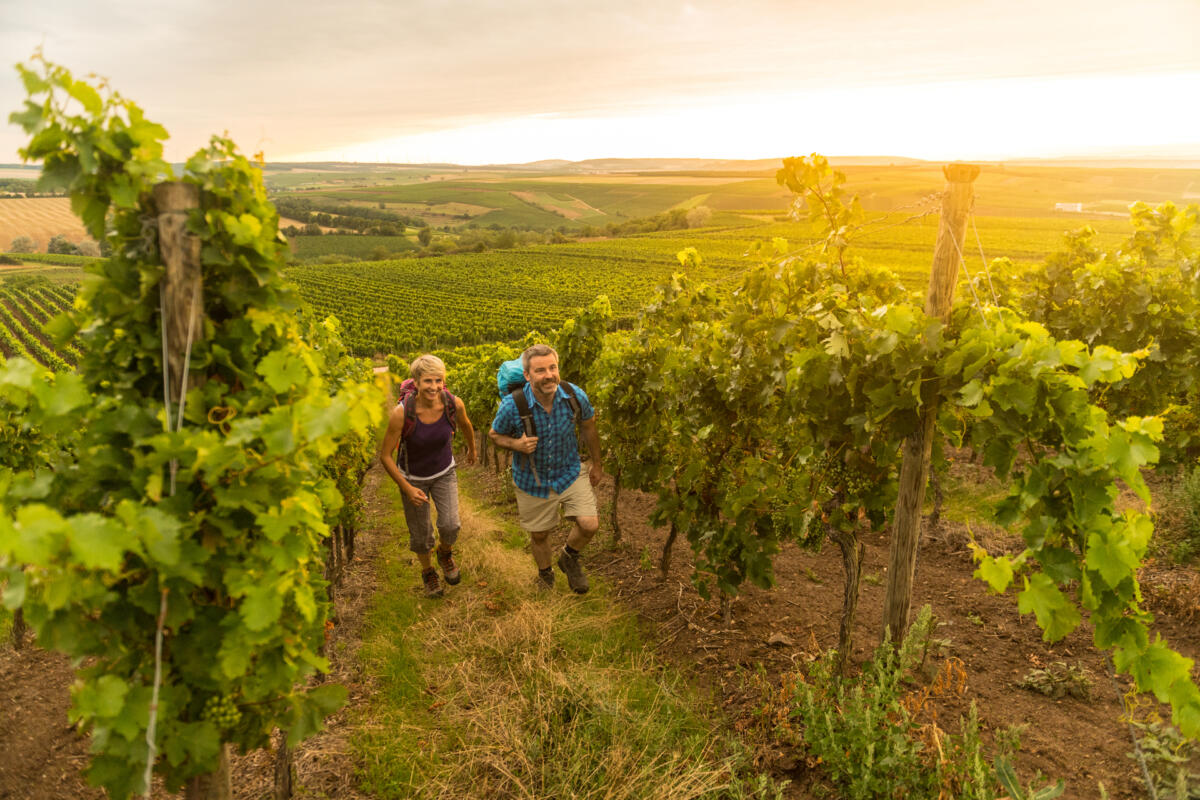 „Hiwwel“ ist der rheinhessische Mundartbegriff für Hügel. Im größten Weinbaugebiet Deutschlands gibt es neun Prädikatswanderwege, die alle den Vornamen „Hiwweltour“ führen und damit gleich einen Hinweis auf ihren abwechslungsreichen Charakter geben. Wie es sich für Premiumwege gehört, ist die Beschilderung gut; ein kleines „h“ auf blau-grünem Hintergrund ist immer in Sichtweite.