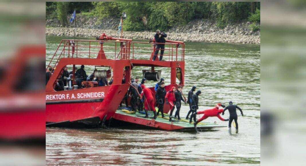In diesem Jahr hat sich die Berufsfeuerwehr der hessischen Landeshauptstadt Wiesbaden wieder dazu entschlossen, das traditionelle Anschwimmen der Taucherinnen und Taucher im Rhein dazu zu nutzen, dem Kreisfeuerwehrverband Gelegenheit zu geben, Spenden für einen wohltätigen Zweck zu sammeln.