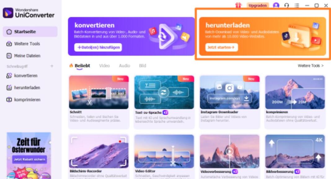 Mit dem Wondershare UniConverter kannst du Mediathek-Inhalte effizient herunterladen und in das gewünschte Format konvertieren. Es bietet eine Vielzahl an Funktionen, die speziell für Personen entwickelt wurden, die flexibel und unabhängig Sendungen aus Mediatheken wie ARD oder ZDF speichern möchten.