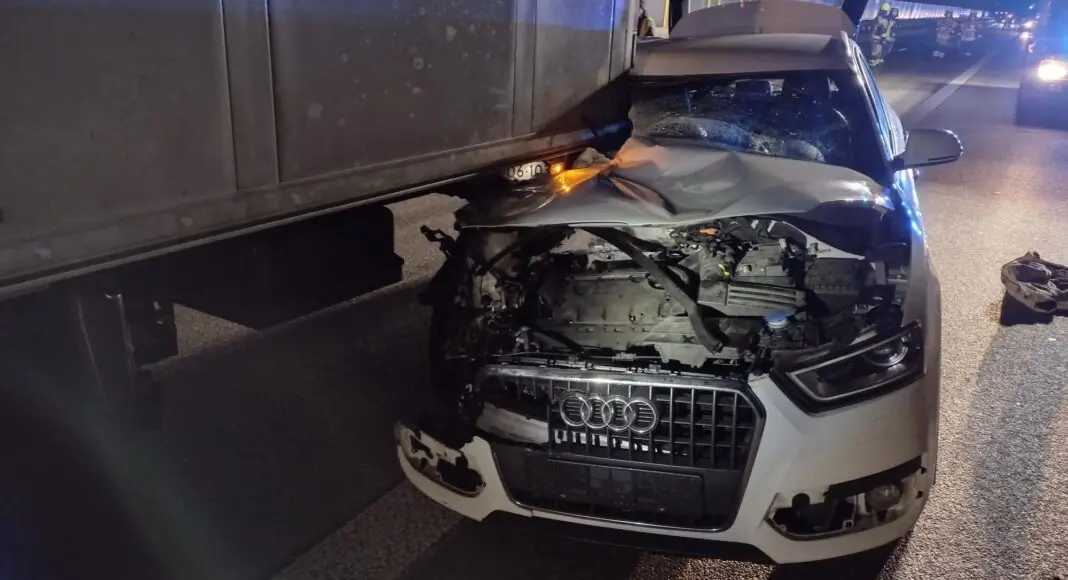 Audi rast unter Sattelzug auf der Autobahn A61 bei Worms