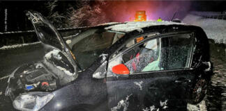 Polizeiwagen kracht auf glatter Straße in Gegenverkehr