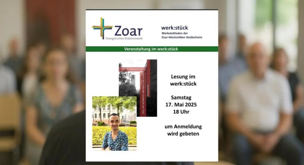 Lesung in Ingelheim: Am Samstag, den 17. Mai 2025, lädt der Werkstattladen werk:stück der Zoar-Werkstätten Heidesheim zu einer besonderen Veranstaltung ein. Ab 18 Uhr erwartet die Besucher eine spannende Lesung mit dem Autor Rafael Bravo, der aus seinem Kriminalroman „Denn der Lohn der Sünde ist der Tod“ vorträgt.