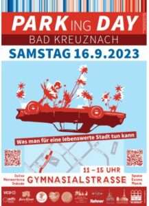 Am Samstag, den 16. September, wird zwischen 11 und 15 Uhr in der Gymnasialstraße in Bad Kreuznach der Park(ing) Day veranstaltet. Dieses Event ist Teil der Europäischen Mobilitätswoche, die vom 16. bis 22. September stattfindet. An diesem Tag werden Straßen und Plätze in der Innenstadt für einen Tag auf kreative Weise umgestaltet. Das Umweltbundesamt unterstützt diese Aktion in Deutschland.