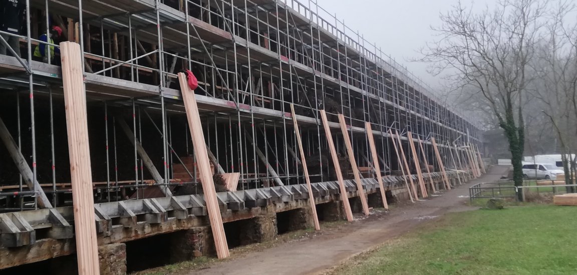Bereits im November wurden die alten Dornen und Latten von den Salinenarbeitern entfernt und entsorgt. Der Wiederaufbau erfolgt durch eine Fachfirma aus Polen, die mit neun Mitarbeitern innerhalb von zwei Wochen das Tragwerk samt Dornwänden erneuert. Die Kosten für diesen Bauabschnitt belaufen sich auf 300.000 Euro. Um die Haltbarkeit zu erhöhen, wurde das Tragwerk mit konstruktiven Anpassungen aus robustem Douglasienholz gefertigt.
