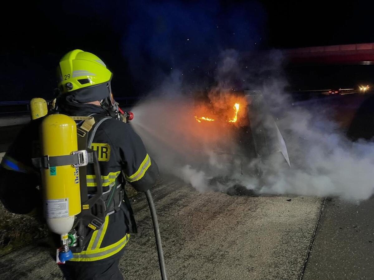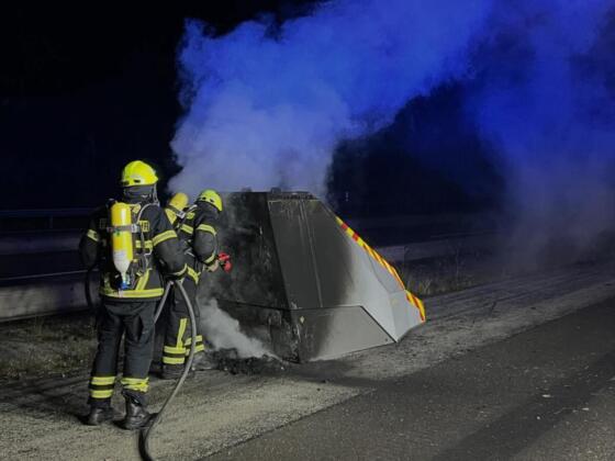 Beim Eintreffen der Einsatzkräfte stand der mobile Blitzer bereits in Vollbrand. Unter Atemschutz löschten die Feuerwehrleute die Flammen und verhinderten so ein Übergreifen auf die umliegende Fahrbahnbegrenzung und Baustelleneinrichtung. Nach rund einer Stunde war der Einsatz erfolgreich beendet.
