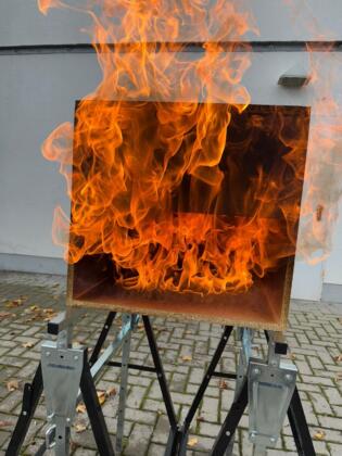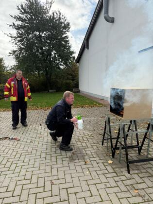 Ausbilder Harald Niephaus erläuterte die verschiedenen Phänomene des Brandrauchs und in welchen Situationen und bei welchen Temperaturen sich ein Rollover (Rauchgasdurchzündung), ein Flashover mit schlagartigem Übergang vom Entstehungsbrand zum Vollbrand oder ein Backdraft als Rauchgasexplosion entwickeln und die Einsatzkräfte diese Entwicklung erkennen können. Mit praktischen Übungen an einem Brandversuchsmodell lernten die Teilnehmerinnen und Teilnehmer, dass ein gezielter Außenangriff durch ein Fenster, der sogenannte Fensterimpuls, einen raschen Löscherfolg bringen kann.