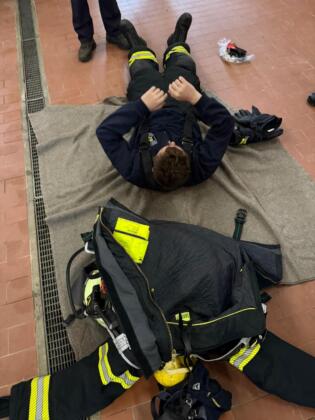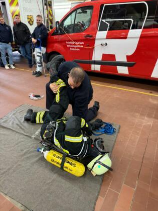 Tipps zur Anwendung der Wärmebildkamera im Innenangriff gehörten ebenso zu den Lerninhalten wie die Rettung und notfallmäßige Entkleidung eines Atemschutzgeräteträgers, der bei seinem Einsatz im Innenangriff verletzt wurde.