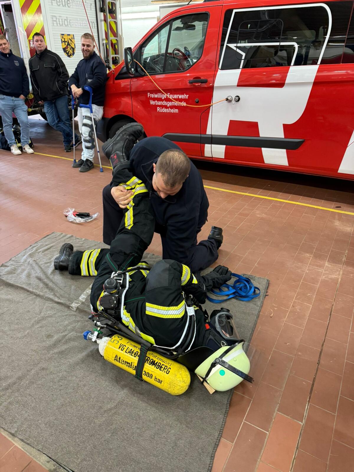 Er dankte Gemeinderatsmitglied Sascha Krüger, der die Teilnehmerinnen und Teilnehmer mit einem Mittagessen verpflegte, und dem Förderverein herzlich für die stetige Unterstützung der Rüdesheimer Feuerwehr.