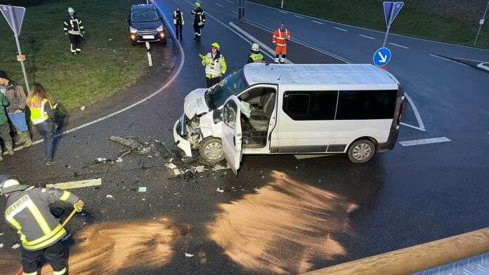 Frontalzusammenstoß zwischen einem PKW und einem Transporter