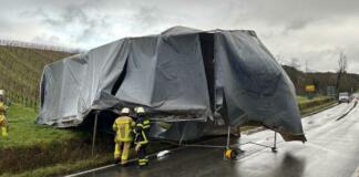 Ein ungewöhnlicher Vorfall sorgte am Sonntagmittag (22. Dezember 2024) gegen 12:30 Uhr auf der Brückes nahe der Rotlaymühle in Bad Kreuznach für erhebliche Verkehrsbehinderungen. Ein großes Zelt, das von einem nahegelegenen Grundstück stammte, wurde durch starke Windböen erfasst und auf die Straße geweht, wo es ein parkendes Auto sowie ein Straßenschild beschädigte. Vollsperrung der Straße … Kurioser Einsatz in Bad Kreuznach: Zelt sorgt für Verkehrsbehinderungen weiterlesen