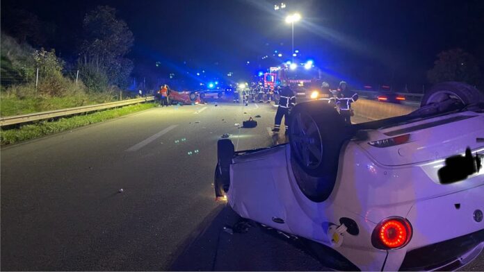 Zu einem schweren Verkehrsunfall auf der A61 bei Waldlaubersheim (Landkreis Bad Kreuznach) in Fahrtrichtung Koblenz am Sonntagabend (20. Oktober 2024) gegen 19:10 Uhr. In Folge des Unfalls, bei dem sich zwei Fahrzeuge überschlagen hatten, musste die Autobahn voll gesperrt werden.