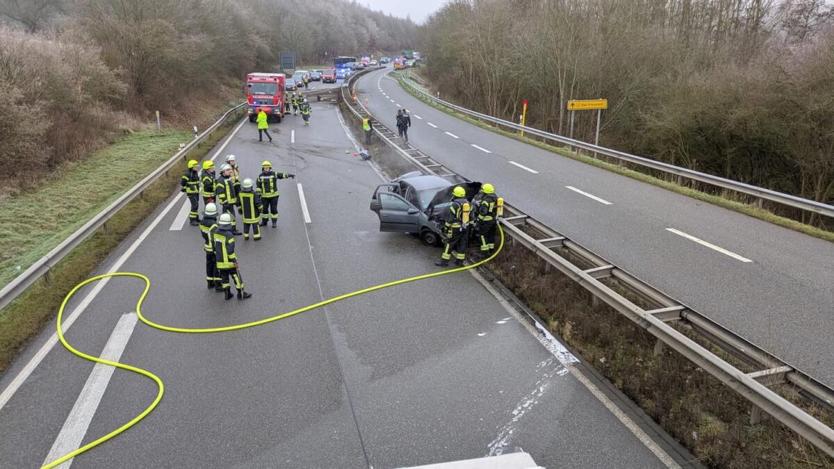 Während der Unfallaufnahme begann das Fahrzeug im Motorraum zu brennen. Ein Atemschutztrupp der Feuerwehr Waldböckelheim konnte den Brand rasch löschen. Neben der Feuerwehr waren auch der Rettungshubschrauber Christoph 77, die Polizei sowie ein Gutachter zur Unfallaufnahme im Einsatz.