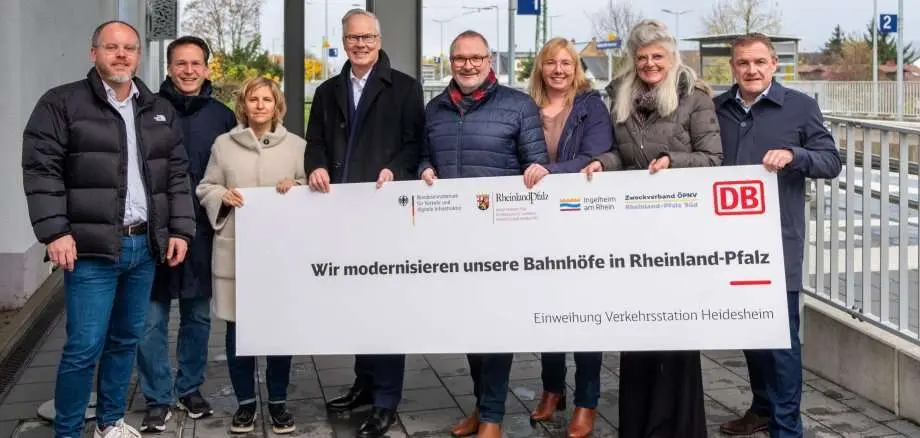 Die Deutsche Bahn (DB) hat die Verkehrsstation Heidesheim für die Fahrgäste modernisiert und dafür gemeinsam mit ihren Partnern rund 14,1 Millionen Euro investiert. Nach Abschluss der im Februar 2022 gestarteten Arbeiten präsentiert sich die Station in neuem Glanz. Die Rampenanlagen zu den Bahnsteigen 1 und 2 ermöglichen Reisenden nun das ebenerdige Ein- und Aussteigen. Zu diesem Zweck haben die Bauteams die Bahnsteige auf einer Länge von 210 Metern auf 76 Zentimeter erhöht. Im Zugangsbereich zum Hausbahnsteig wurde das alte Bahnsteigdach durch ein modernes ersetzt. Erneuerte Fahrgastunterstände, Fahrplan- und Informationsvitrinen erhöhen zusätzlich die Aufenthaltsqualität. Für eine bessere Orientierung sorgt außerdem ein taktiles Wegeleitsystem für Blinde und Sehbehinderte sowie die energieeffiziente Beleuchtung.