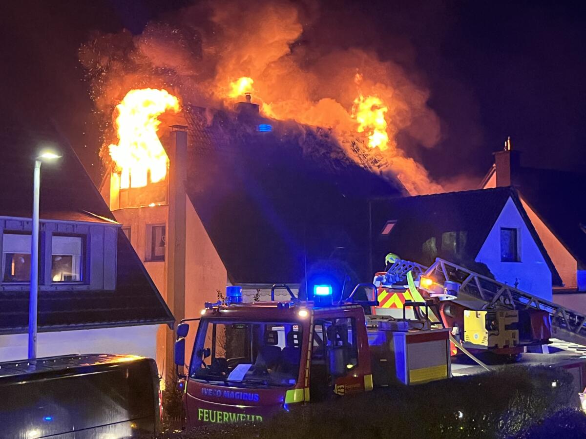 Gegen 17:37 Uhr wurde die Feuerwehr über ein Zimmerbrand im Dachgeschoss des Vier-Parteien-Hauses informiert. Bereits bei Eintreffen der Einsatzkräfte stand die Dachgeschosswohnung in Vollbrand, und das Feuer hatte auf den Dachstuhl übergegriffen. Trotz eines schnellen Löschangriffs über die Drehleiter und mit mehreren Strahlrohren konnte eine starke Beschädigung des Gebäudes nicht verhindert werden. Um 17:52 Uhr wurde Vollalarm für die Feuerwehr Heiligenhaus ausgelöst, insgesamt waren rund 50 Einsatzkräfte rund fünf Stunden im Einsatz.