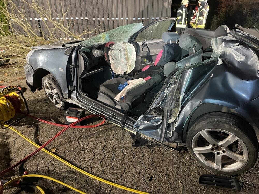 Der 23-jährige Fahrer eines VW-Polo aus Harsefeld war mit seinem Auto im Wiesenweg im dortigen 30er-Bereich unterwegs. In einer Rechtskurve kam das Auto vermutlich aufgrund nicht angepasster Geschwindigkeit nach links von der Fahrbahn ab, prallt zunächst gegen den Bordstein und anschließend gegen einen am linken Fahrbahnrand stehenden Baum. Durch den Aufprall wurde die Fahrertür des Pkw abgerissen und der Fahrer aus dem Fahrzeug geschleudert. Anschließend blieb der Pkw auf dem Dach liegen. Der Baum wurde durch den Aufprall entwurzelt und geteilt.