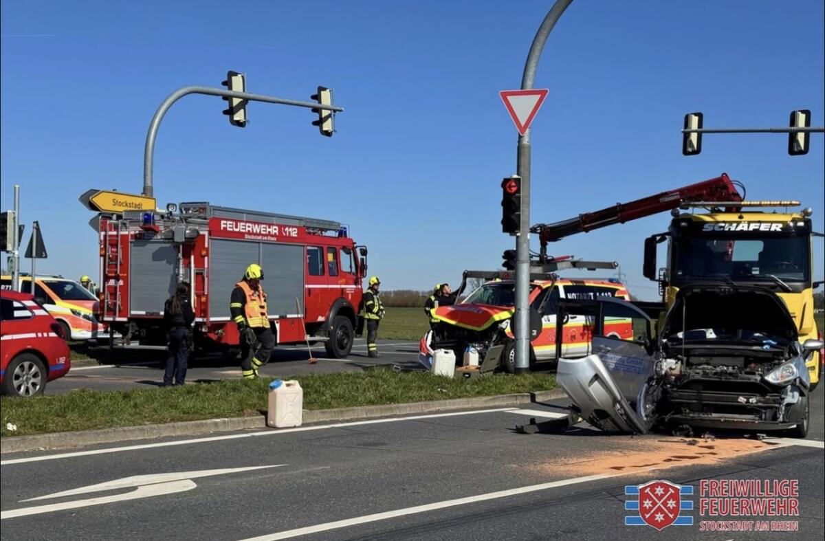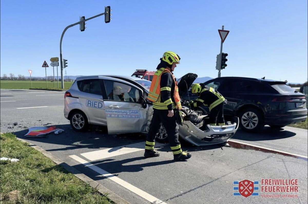 Die Feuerwehr Stockstadt wurde gemeinsam mit dem Rettungsdienst an die Unfallstelle alarmiert. Vor Ort bestätigte sich die gemeldete Lage: Die Einsatzkräfte sicherten zunächst den Kreuzungsbereich ab, um weitere Gefahren zu vermeiden und einen reibungslosen Ablauf der Rettungsmaßnahmen zu gewährleisten.