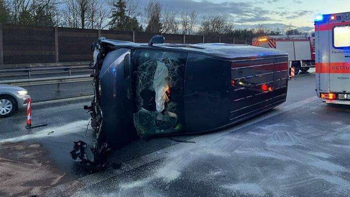 Als die Rettungskräfte am Unfallort eintrafen, ging über den im verunfallten Fahrzeug verbauten Notrufassistenten die Mitteilung ein, dass der Fahrzeugführer im Fahrzeug eingeklemmt sei. Glücklicherweise konnte der 26-jährige Fahrer jedoch nur leicht verletzt aus seinem Fahrzeug befreit werden. Wie die Polizei bekannt gab, hat der Fahrer bei einsetzendem Platzregen und nicht angepasster Geschwindigkeit die Kontrolle über sein Fahrzeug verloren. Das Fahrzeug kam ins Schleudern, kollidierte in der Rechtskurve mit der Betonschutzwand, kippte dadurch auf die Seite und lag entgegengesetzt der Fahrtrichtung auf dem rechten Fahrstreifen. Durch das beherzte Eingreifen von Ersthelfern konnte die Unfallstelle vorbildlich abgesichert und Erste Hilfe geleistet werden.