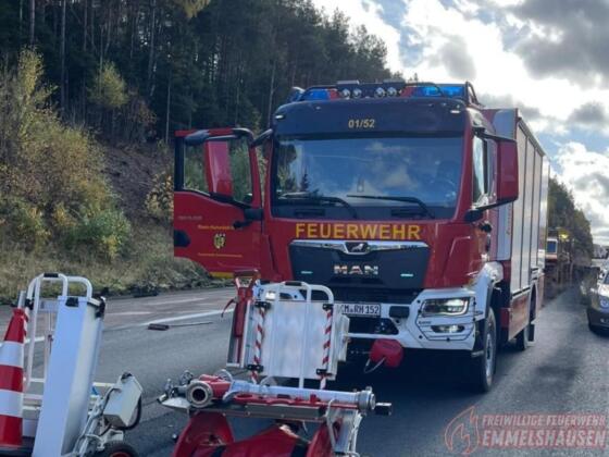 Fahrer eingeklemmt, Fahrbahn stundenlang gesperrt