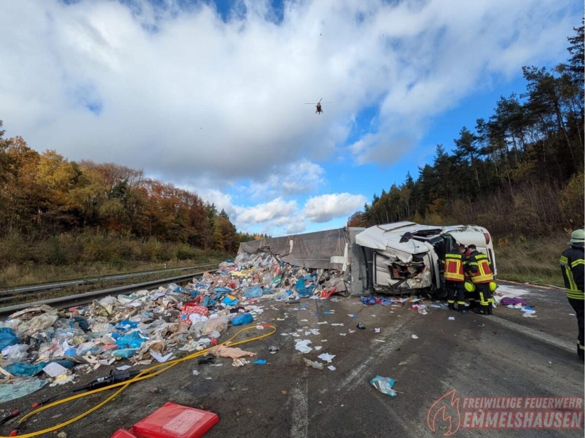 Vollsperrung: Schwerer Lkw-Unfall auf der A61 bei Laudert