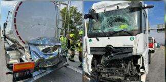 Schwerer Unfall zwischen Sattelschlepper und Tank-Lkw auf der A61