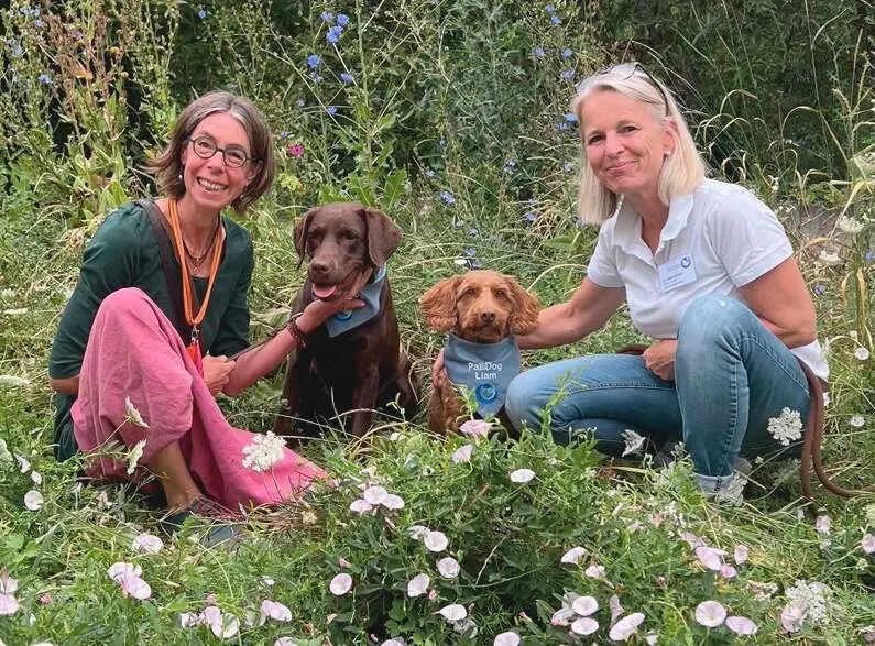Dr. Katja Schwan und Tanja Susenburger vom Palliativstützpunkt Rheinhessen-Nahe am Krankenhaus St. Marienwörth und ihre Hunde Liam und Erna sind eingespielte Teams und etwa zwei Mal im Monat im Einsatz. Ohne Worte können Therapiebegleithunde einen eigenen Zugang zu den Patienten aufbauen und eine sinnvolle Ergänzung der Therapie sein.