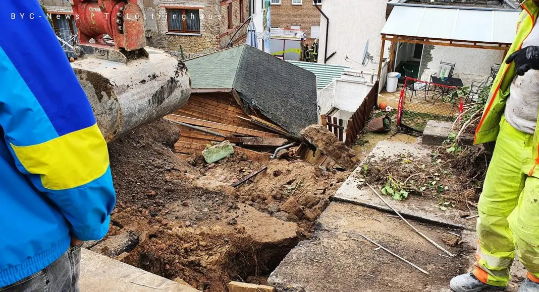 Wie der Einsatzleiter der Feuerwehr vor Ort gegenüber BYC-News mitteilte, fanden in der Straße „Im Zuckergarten“, die oberhalb der Morschstraße liegt, Baggerarbeiten statt. Dabei fiel ein größerer Stein auf eine Wasserleitung, die daraufhin platzte. Umgehend floss das Wasser sinnflutartig über ein Grundstück, einen Garten und in die Morschstraße. Durch den massiven Wasserdruck ist eine Mauer weggebrochen und eine Gartenhütte durch den Erdrutsch eingestürzt.