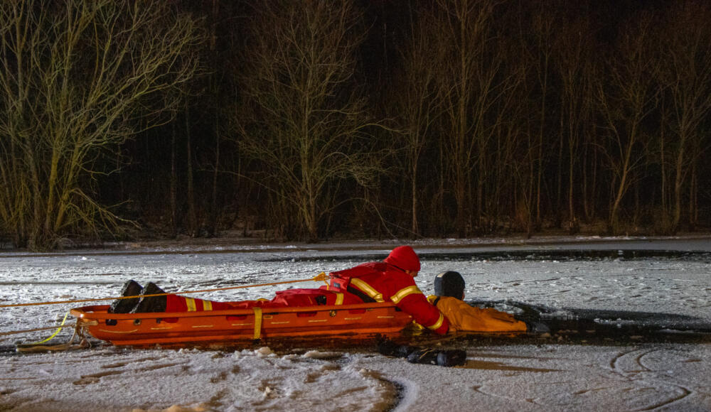 Eisrettungsübung von Feuerwehr und DLRG in Rheinhessen