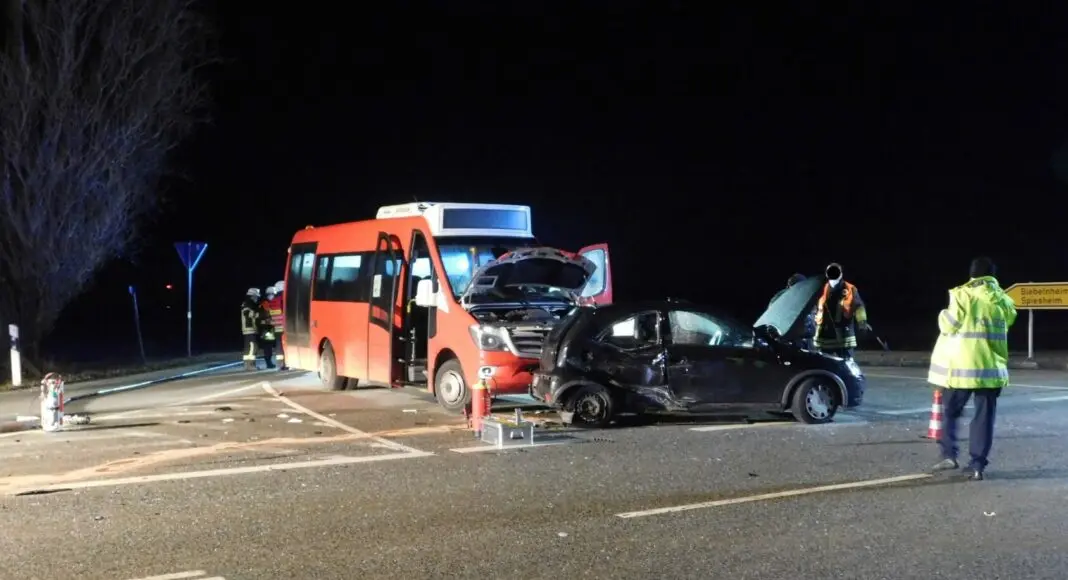 Gegen 17:00 Uhr kam es zu dem Verkehrsunfall zwischen zwei PKW und einem Bus an der Einmündung zur Landstraße L401. Laut Polizeiangaben übersah ein 49-Jähriger aus Rheinhessen, der von Wörrstadt in Richtung Spiesheim unterwegs war, beim Abbiegevorgang eine 49-jährige, die aus Ensheim in Richtung Wörrstadt fuhr. Der Opel Corsa des Fahrers aus Rheinhessen drehte sich nach dem Zusammenstoß um die eigene Achse und wurde gegen einen mittlerweile stehenden Kleinbus geschleudert. Im Kleinbus befanden sich zum Zeitpunkt des Unfalls glücklicherweise keine Fahrgäste. Die Landstraßen L414 und L401 wurden für die Rettungsarbeiten und die Unfallaufnahme durch die Feuerwehr voll gesperrt. Eine Person wurden bei dem Unfall verletzt und vom Rettungsdienst zur weiteren Untersuchung in ein nahe gelegenes Krankenhaus transportiert.