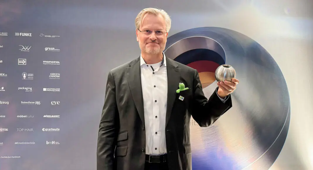 Bei der Verleihung des 17. Deutschen Nachhaltigkeitspreises wurden die Vorreiter-Unternehmen der Transformation geehrt – eine hochkarätig besetzte Jury zeichnete das Mainzer Reinigungsmittelunternehmen Werner & Mertz als Ökopionier für seine nachhaltige Wirtschaftsweise aus. Inhaber Reinhard Schneider nahm den Preis persönlich entgegen.