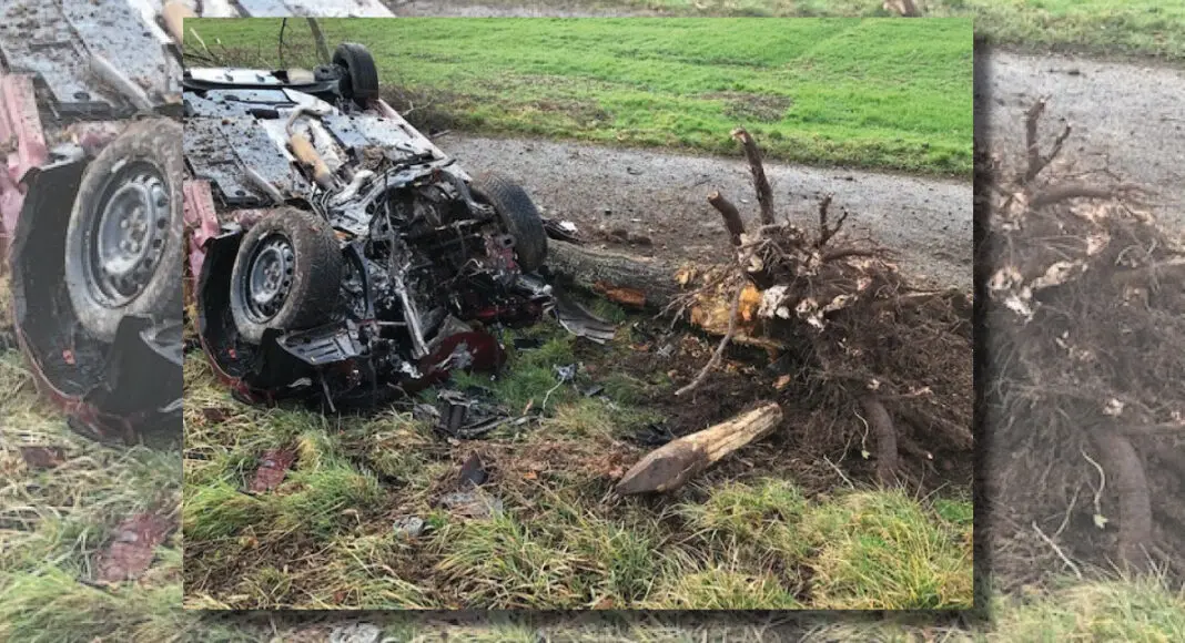 Ein 19-Jähriger Autofahrer war mit seinem Toyota auf der Landstraße aus Richtung Merxheim in Richtung Meddersheim unterwegs. In einer leichten Linkskurve kam er aus bislang unbekannter Ursache von der Straße ab und krachte frontal gegen einen Baum. Durch die enorme Wucht des Aufpralls wurde der Baum entwurzelt. Der junge Fahrer überschlug sich nach dem Aufprall mit seinem Fahrzeug, konnte sich aber aus eigener Kraft aus dem Fahrzeugwrack befreien. Er wurde mit dem Rettungsdienst in ein umliegendes Krankenhaus transportiert.