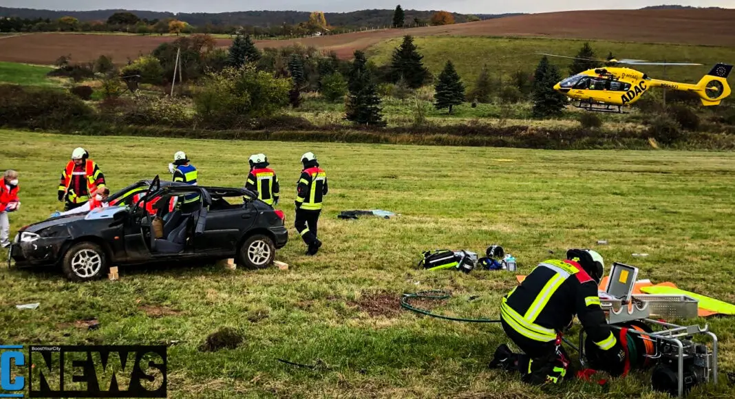 Ein 18-jähriger Fahranfänger kam auf der L398 mit seinem Ford Fiesta in einer Linkskurve von der Fahrbahn ab und überschlug sich mehrfach mit seinem Auto. Das Fahrzeug kam abseits der Straße auf einer Wiese zum stehen. Durch die Wucht vom Überschlag wurde der junge Mann in seinem Fahrzeug eingeklemmt. Die alarmierten Rettungskräfte mussten den Fahrer aus dem Fahrzeug befreien.