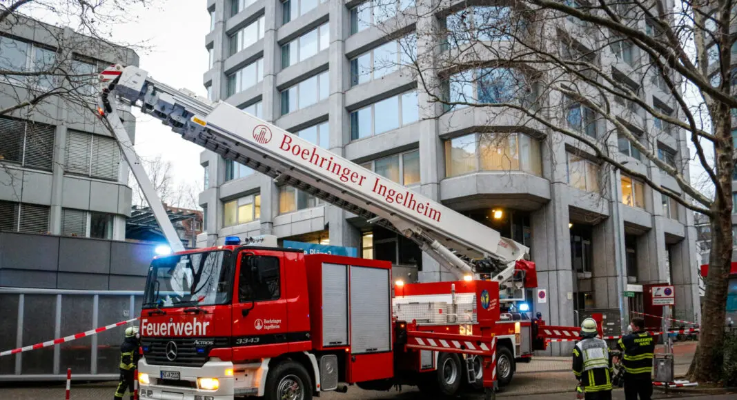 Drehleiter der Werkfeuerwehr Boehringer angefordert