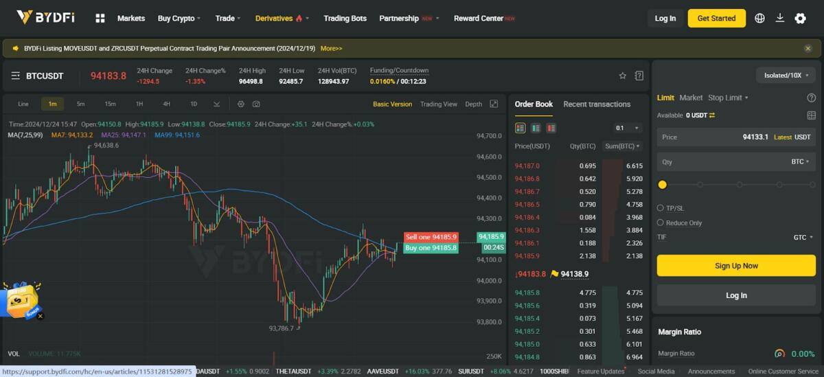 Darüber hinaus sorgt die hohe Liquidität auf BYDFi für schnelle Orderausführung, während transparente Gebührenstrukturen und flexible Margin-Optionen (Cross oder Isolated) für Klarheit und Kontrolle sorgen.