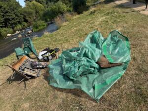 Insgesamt transportierten die Stadtpolizei und die unterstützenden Kräfte rund drei bis vier Kubikmeter Müll vom Lagerplatz zum Ufer. Die Frankfurter Entsorgungs- und Service GmbH (FES) wurde zur Entsorgung angefordert und übernahm die Abfälle noch vor Ort.