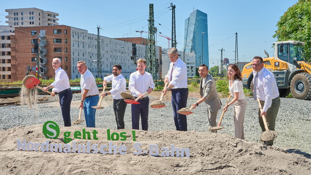 Es geht voran beim Infrastrukturausbau im Ballungsraum Frankfurt/Rhein-Main: Am Montag, 30. Juni, fand im Osten Frankfurts der offizielle Spatenstich für den Bau der Nordmainischen S-Bahn statt. Vertreterinnen und Vertreter aus Politik und Bahn markierten damit den Beginn einer Infrastrukturmaßnahme von hoher Bedeutung – sowohl für die Region als auch für das bundesweite Schienennetz.