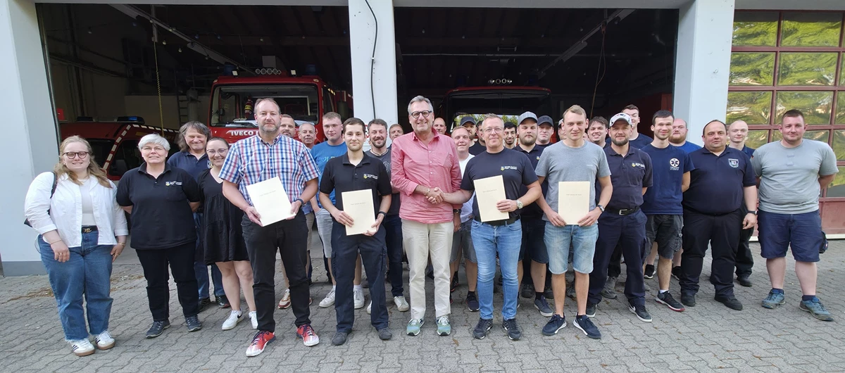 Die Wahlversammlung wurde von Oberbürgermeister Thomas Feser geleitet, der die Gelegenheit nutzte, um die herausragende Arbeit der Feuerwehr zu würdigen. In seiner Ansprache betonte Feser: „In einer Zeit, in der ehrenamtliches Engagement keineswegs selbstverständlich ist, bin ich stolz auf eine so tatkräftige und verlässliche Feuerwehr wie die in Bingen blicken zu dürfen. Die Frauen und Männer der Freiwilligen Feuerwehr Bingen stehen rund um die Uhr bereit, um anderen in größter Not zu helfen – freiwillig und uneigennützig. Mein besonderer Dank gilt Matthias Jäckel für seinen langjährigen, unermüdlichen Einsatz an der Spitze der Wehr. Gleichzeitig gratuliere ich Sascha Welpe und Mike Schitthof herzlich zu ihren neuen Funktionen. Ich bin überzeugt, dass sie gemeinsam mit der gesamten Mannschaft die erfolgreiche Arbeit der vergangenen Jahre fortsetzen werden.“