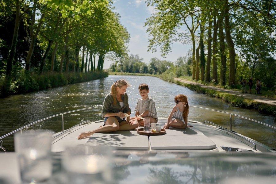 Anbieter wie Le Boat vermieten führerscheinfreie Hausboote für zwei bis zwölf Personen. Die Boote eignen sich für Paare, Familien oder Freundesgruppen, auch Hunde dürfen mit an Bord. Nach einer ausführlichen Einweisung im Starthafen übernehmen die Urlauber selbst das Steuer. Übernachtet wird dort, wo es am schönsten ist: an ruhigen Ufern, in historischen Hafenstädtchen oder vor Anker auf einem See. Die Boote sind als vollwertige Ferienwohnungen ausgestattet – mit Schlafkabinen, Salon, Badezimmern mit Warm- und Kaltwasser sowie kompletter Küche. Bettwäsche, Handtücher, Geschirr und Besteck gehören zur Standardausstattung.
