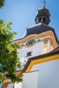 Nicht weit von der sehenswerten 45.000-Einwohner-Stadt mit ihren vielen bunten Renaissancehäusern verläuft einer der bekanntesten und mit seinen insgesamt 660 Kilometern auch längsten Qualitätswanderwege Deutschlands. Der Goldsteig lässt sich von Weiden aus über zwei etwa sechs bis sieben Kilometer lange Zubringerwege erreichen. Die südliche Route führt unter anderem auf den Heiligen Dreifaltigkeitsberg. Auf der von Wiesen umgebenen Anhöhe gruppieren sich in pittoresker Art und Weise sogenannte Birnbeiml und eine kleine Kapelle. Genau genommen sind die „Birnbeiml“ gar keine Birnbäume, sondern Bergahorne. Von hier oben lassen sich Fernblicke über das Waldnaabtal und den Oberpfälzer Wald, zur trutzigen Burg Leuchtenberg und der Wallfahrtskirche auf dem Fahrenberg genießen.