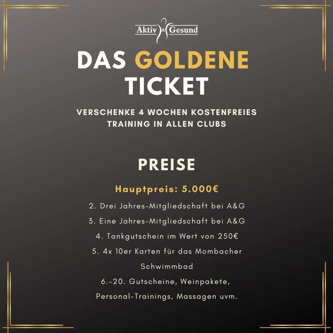 Die Aktion startet ab 01. Oktober. Ab dann können die Beschenkten vier Wochen kostenfrei trainieren. Wieviele Tickets noch verfügbar sind und alle Informationen zur Aktion gibt es auf der Seite von Aktiv & Gesund – das goldene Ticket. Das letzte Ticket kann am 31.10.2022 starten. Am 15.12.2022 werden die Lose für das goldene Ticket gezogen.