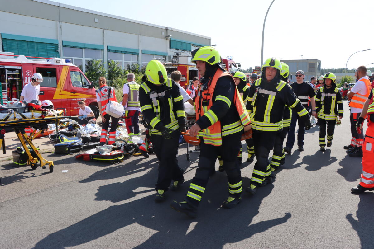 Ein besonderer Schwerpunkt lag auf der Einrichtung einer Dekontaminations-Strecke für Betroffene, die mit Gefahrstoffen in Kontakt gekommen waren. Denn erst nach der Dekontaminierung durften diese in Krankenhäuser transportiert werden. Aufgrund der Vielzahl an Verletzten kamen auch Rettungsdienste aus Frankfurt, dem Kreis Offenbach und von der Bergstraße zur Unterstützung. Feuerwehren waren aus dem gesamten Kreis Groß-Gerau im Einsatz.