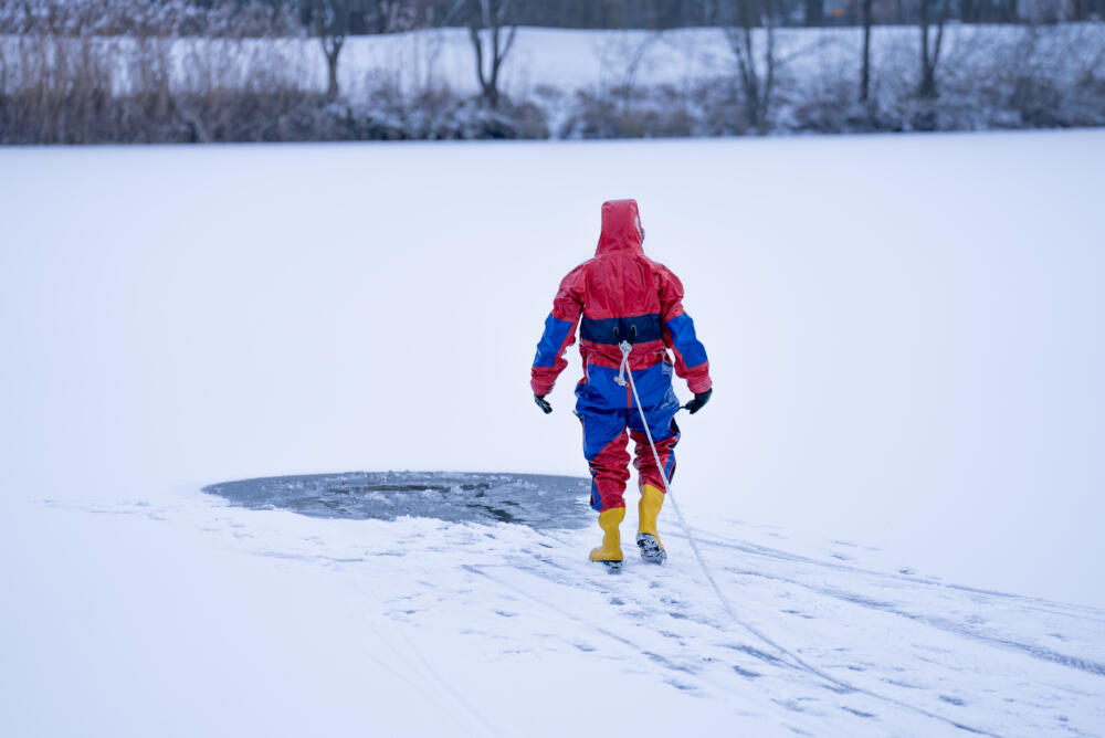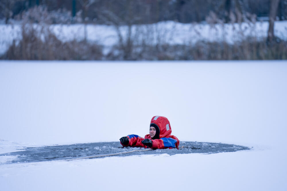 Bei einem Einbruch ins Eis ist schnelles Handeln entscheidend. Nicht nur die niedrige Wassertemperatur, sondern vor allem die Dauer des Aufenthalts im Wasser ist lebensgefährlich. Bereits nach kurzer Zeit lassen Muskelkraft und Koordinationsfähigkeit stark nach, die Atmung wird beeinträchtigt und Betroffene können sich oft nicht mehr am Eisrand festhalten.