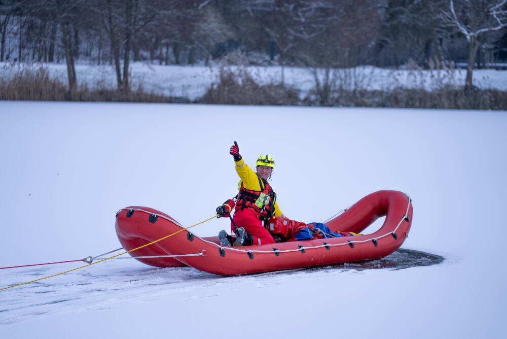 Warum Einsatzkräfte liegend aufs Eis gehen