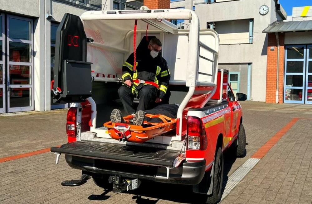Für die Rettung von verunfallten oder verletzten Personen aus unwegsamen Gelände hat die Feuerwehr Rüsselsheim ein neues Wechselmodul im Einsatz. Basisfahrzeug für das Rettungsmodul ist der bereits im Jahr 2021 in Dienst gestellte Pick-up, der auch mit dem Wechselmodul Waldbrand genutzt wird.