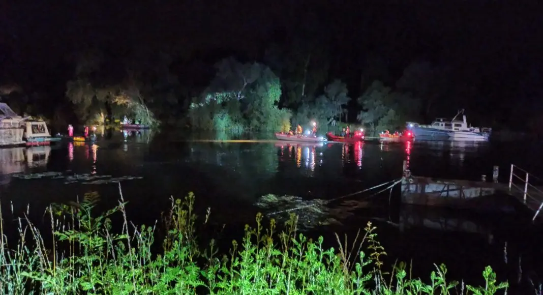 Vor Ort im Einsatz waren rund 50 Einsatzkräfte. Die DLRG mit drei Booten, Strömungsrettern und mehreren Fahrzeugen sowie die Feuerwehr mit zwei Booten und mehreren Fahrzeugen. Auch der Malteser Rettungsdienst, ein Notarzt und ein Hubschrauber waren im Einsatz sowie der Kreisbrandinspektor und der Brandschutzaufsichtsdienst.