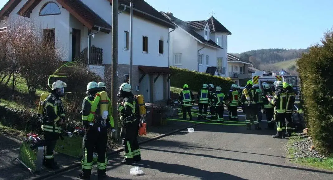 Ein Gebäudebrand im Weinbergsblick in Wallhausen rief mehr als 40 Einsatzkräfte am Dienstagmittag (21. Februar 2023) auf den Plan. Gegen 13 Uhr meldete eine Nachbarin Rauchentwicklung aus einem Einfamilienhaus. Sofort wurde die örtliche Wehr alarmiert und auch Einheiten aus Spabrücken-Hergenfeld und Hargesheim-Roxheim sowie die Tagesalarmgruppe und die Wehrleitung mit Führungsunterstützung eingesetzt. Zusätzlich wurden Atemschutzträger der Feuerwehr Rüdesheim und eine Drehleiter aus Stromberg nachalarmiert.