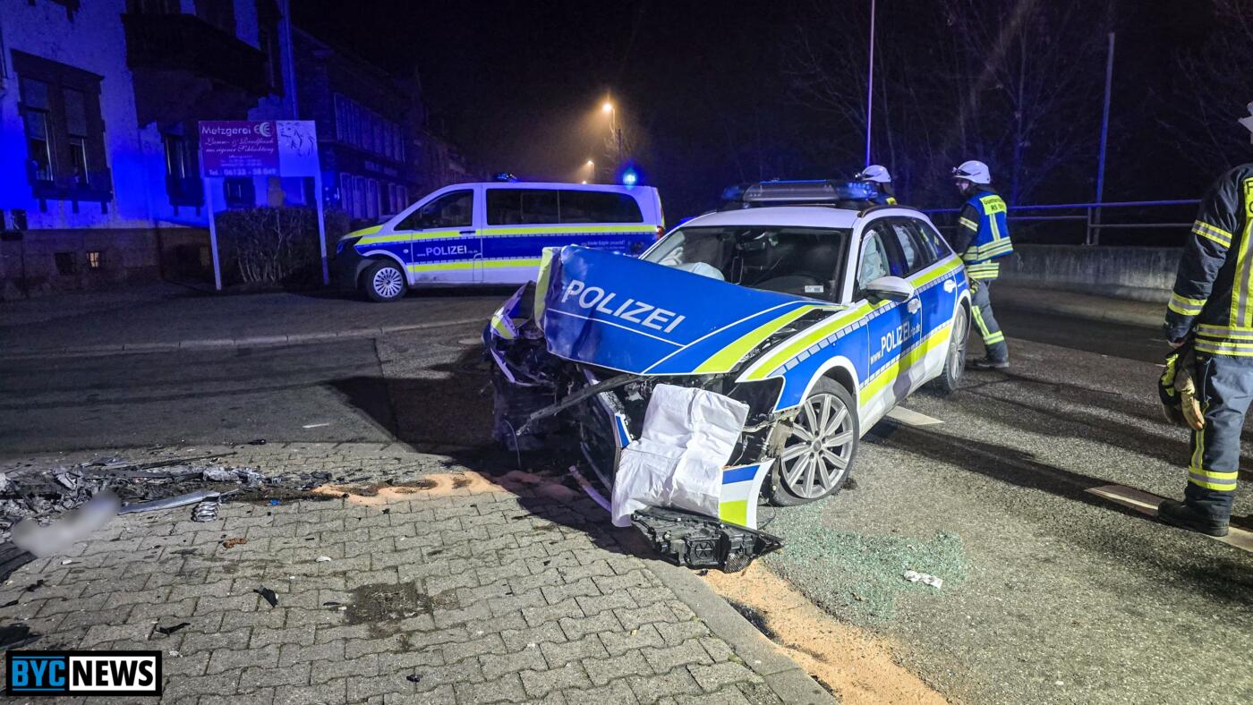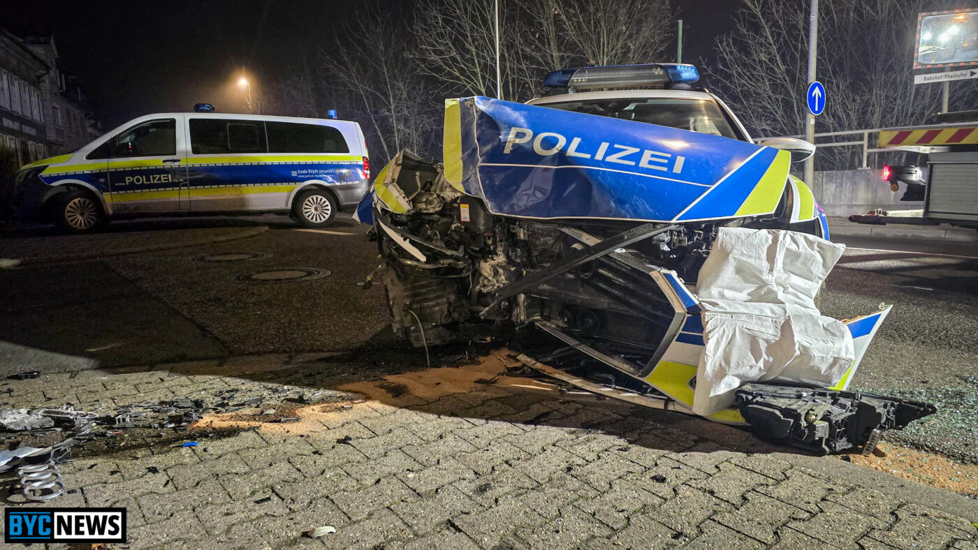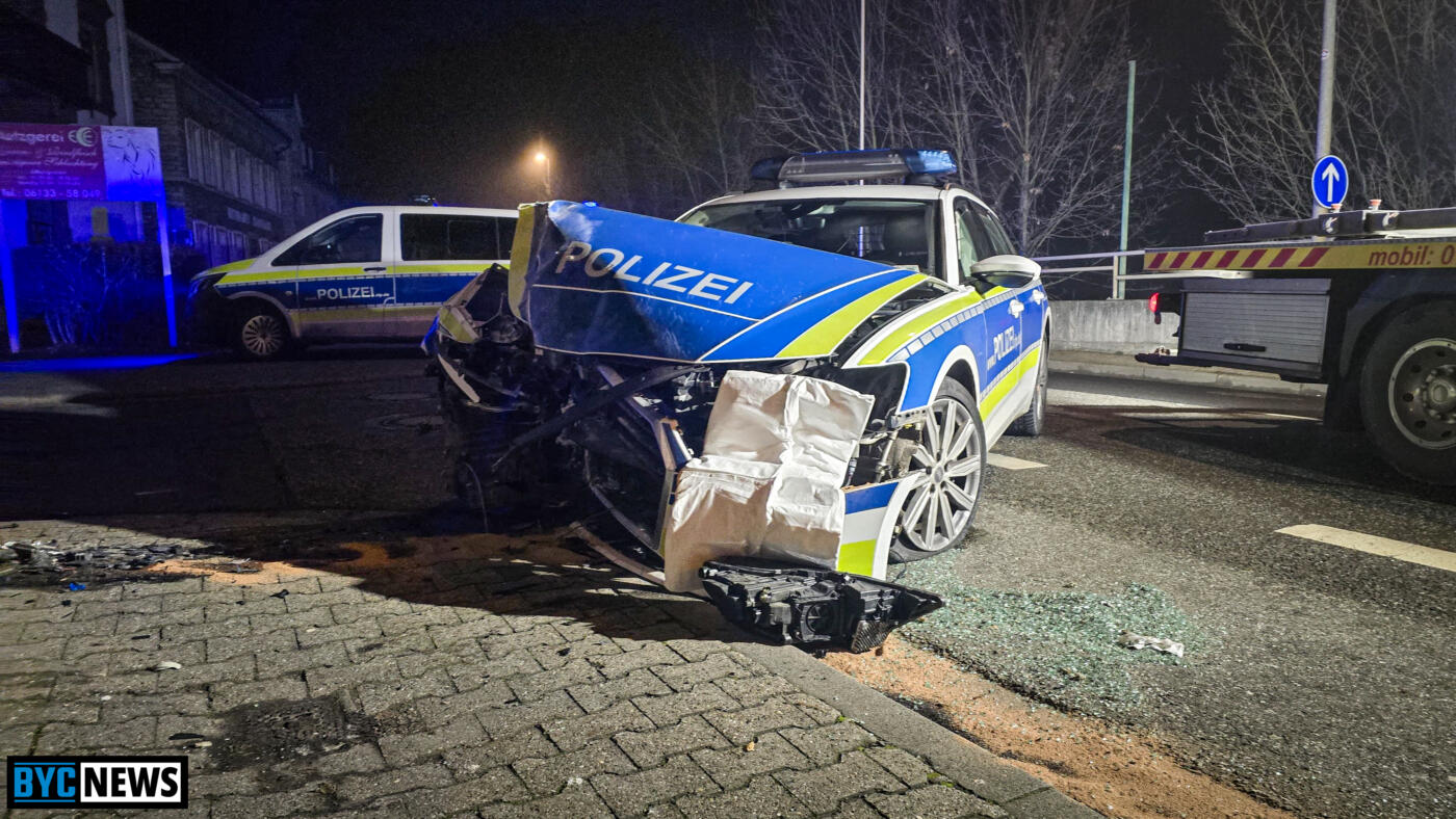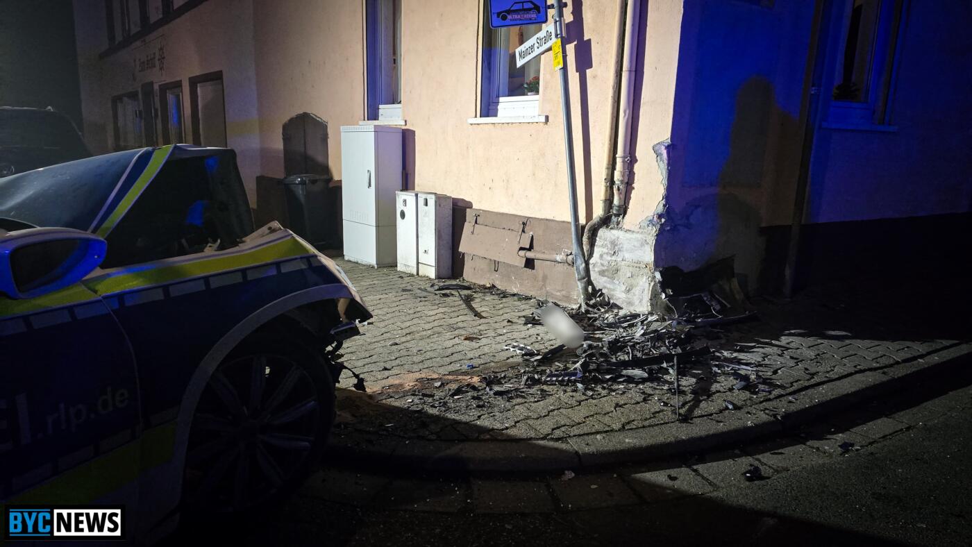 Die dramatische Fahrt nahm in der Ortsdurchfahrt von Nierstein ein jähes Ende für einen der beteiligten Streifenwagen. Im Bereich der Einmündung zur Breitgasse verlor der Fahrer auf der glatten Fahrbahn die Kontrolle und kollidierte frontal mit einer Hauswand. Der Wagen verunfallte so schwer, dass im Innenraum sämtliche Airbags auslösten und der verunfallte Streifenwagen die Straße blockierte. Aufgrund der massiven Schäden war das Polizeiauto nicht mehr fahrbereit und musste durch einen Abschleppdienst abgeschleppt werden.